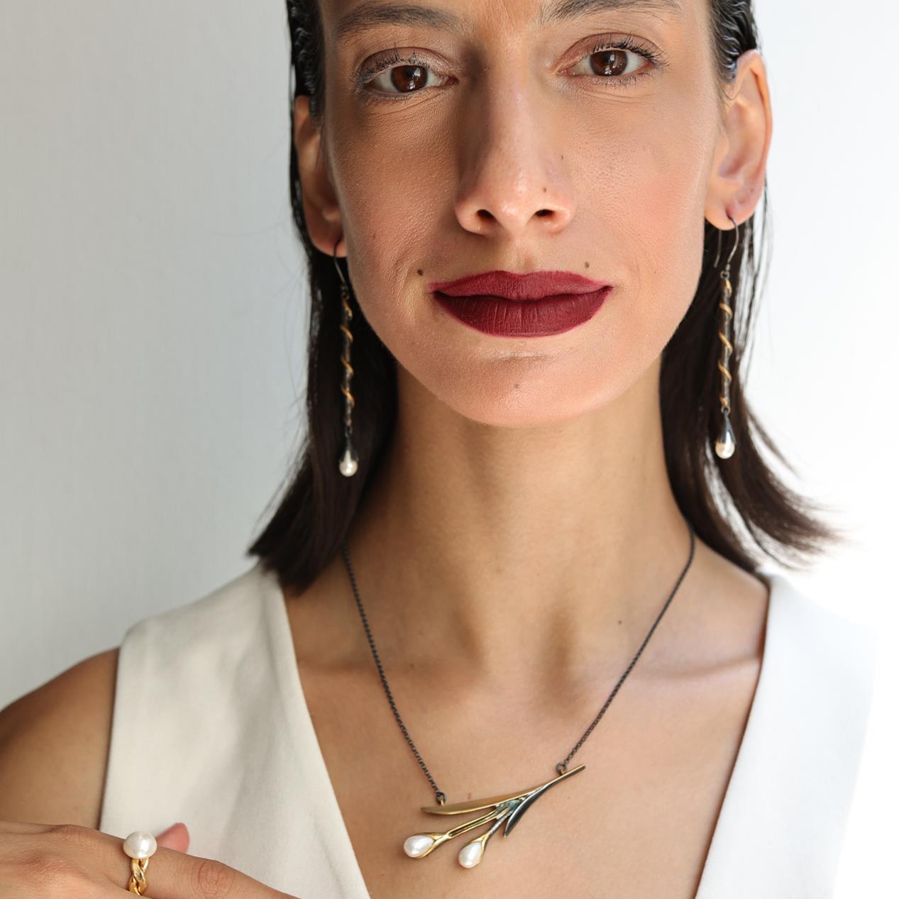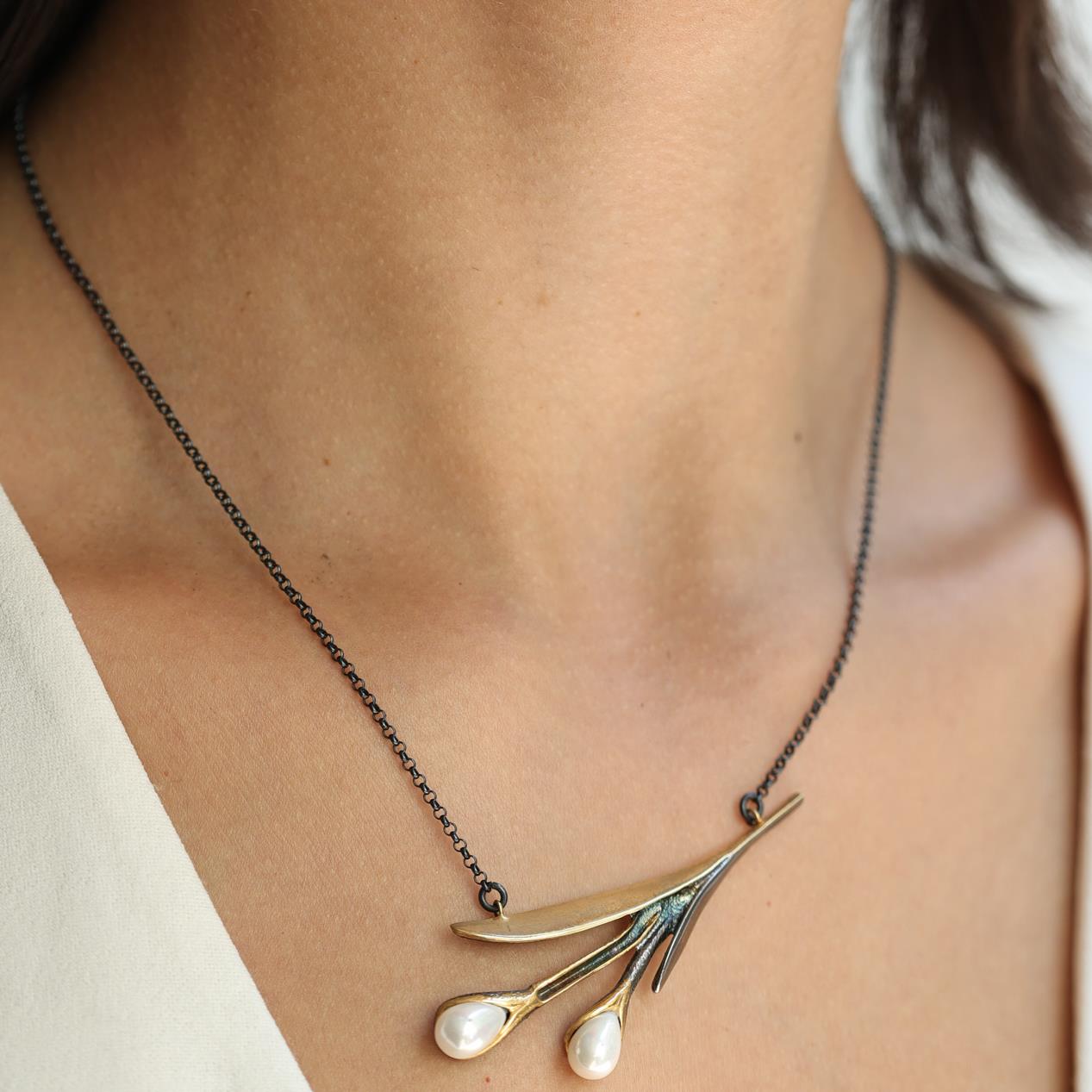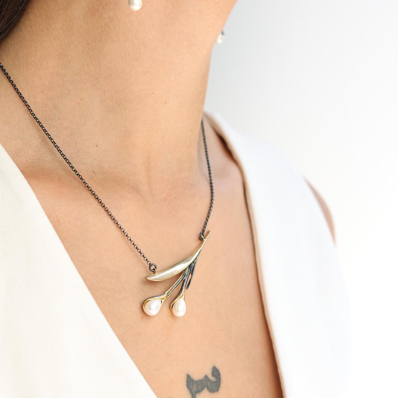 139.00 € inkl. Mwst.Diese elegante handgefertigte Blumen-Halskette für Damen verbindet verspieltes Design mit hochwertigen Materialien. Gefertigt aus 925er Sterling Silber und 14 Karat vergoldet, wird die Kette durch zwei zarte Perlen an der Blütenform akzentuiert, die ihr einen femininen und eleganten Charme verleihen.