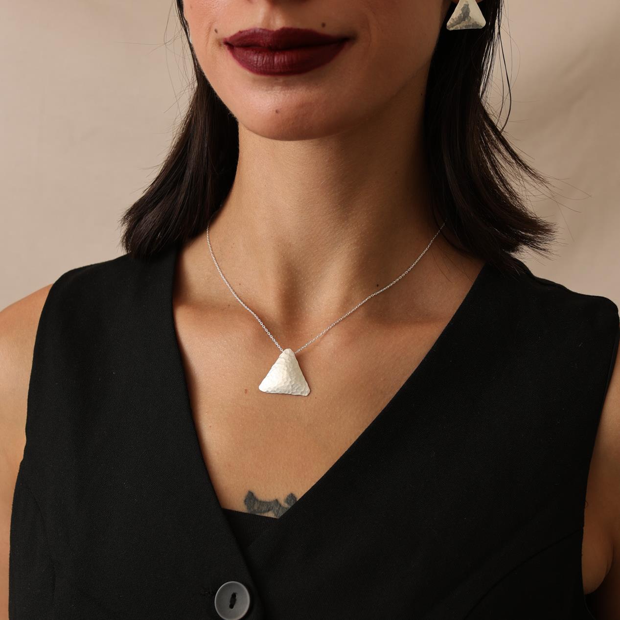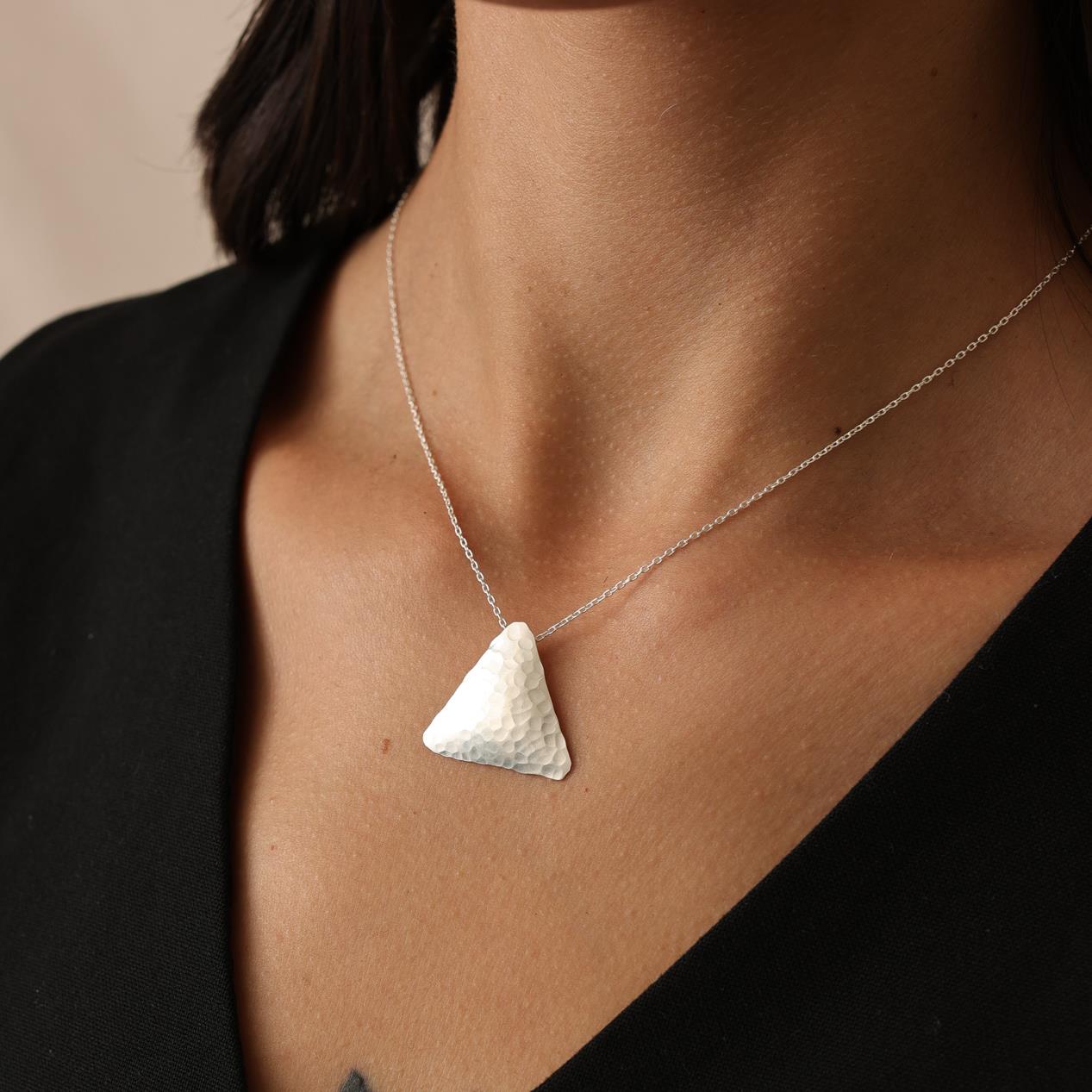 Die Halskette wird sorgfältig von Hand gefertigt und überzeugt durch ihre individuelle Optik sowie angenehmen Tragekomfort. Das geometrische Dreieck-Design macht sie zu einem ausdrucksstarken Schmuckstück, das sowohl im Alltag als auch zu besonderen Anlässen stilvolle Akzente setzt.