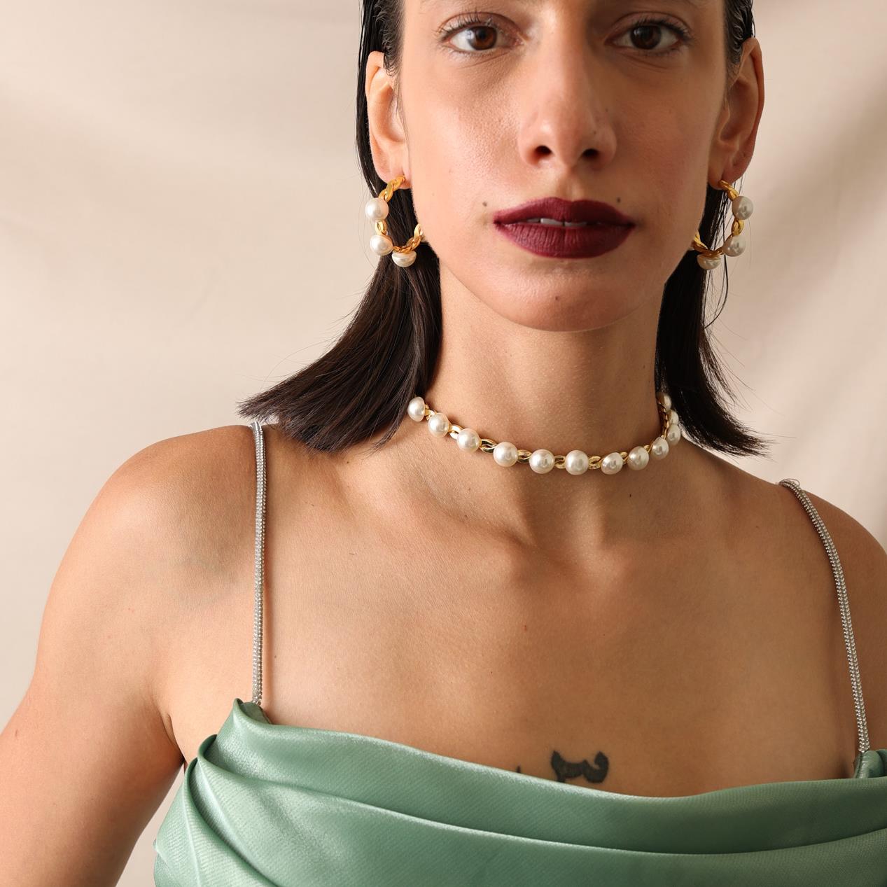 GEFLOCHTENE PERLENHALSKETTE