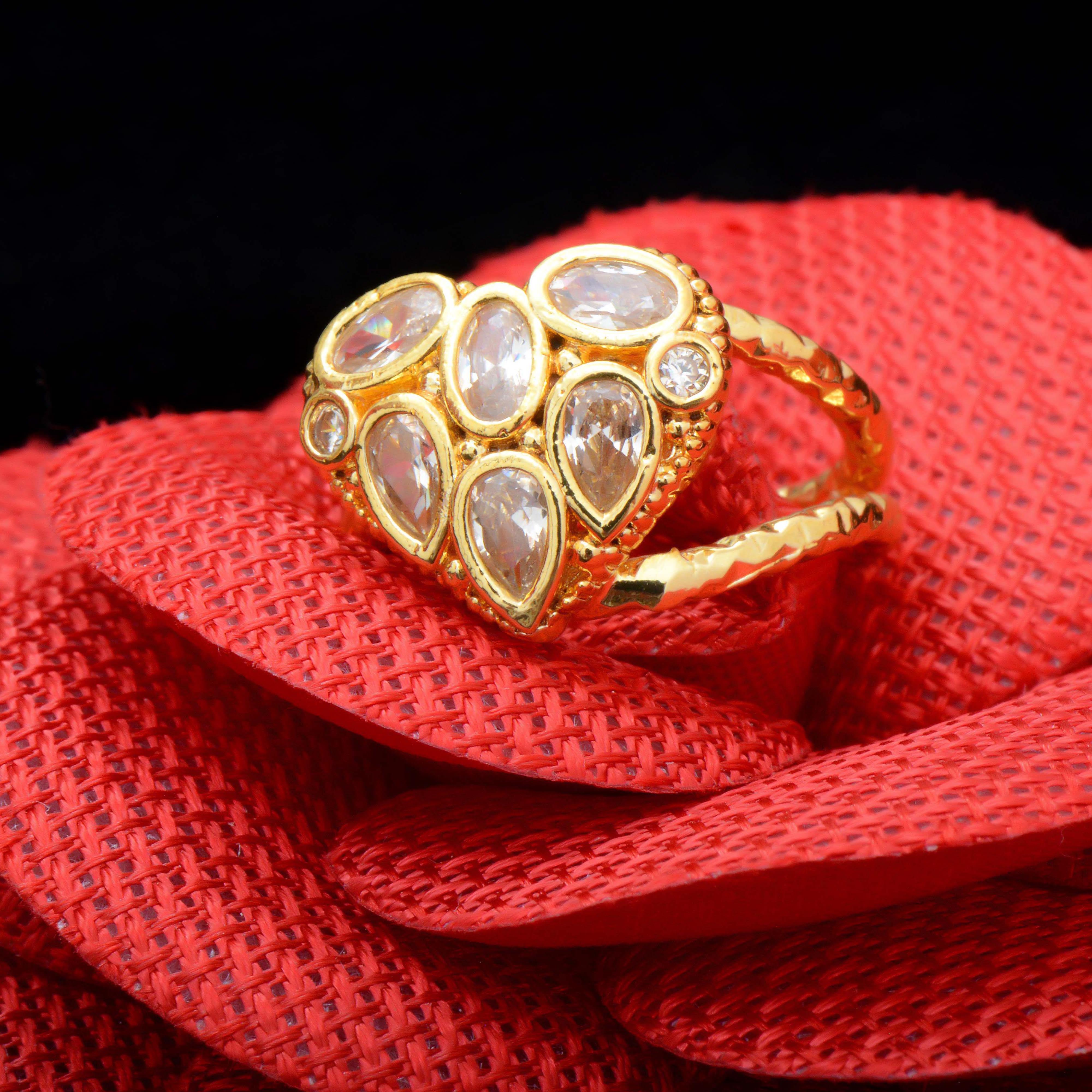 65.00 € inkl. Mwst.Dieser elegante handgefertigte Herzring für Damen ist größenverstellbar und besticht durch sein romantisches Design und hochwertige Materialien. Die funkelnden Zirkonsteine werden stilvoll in das vergoldete Messing eingefasst und verleihen dem Ring eine feminine, edle Ausstrahlung.