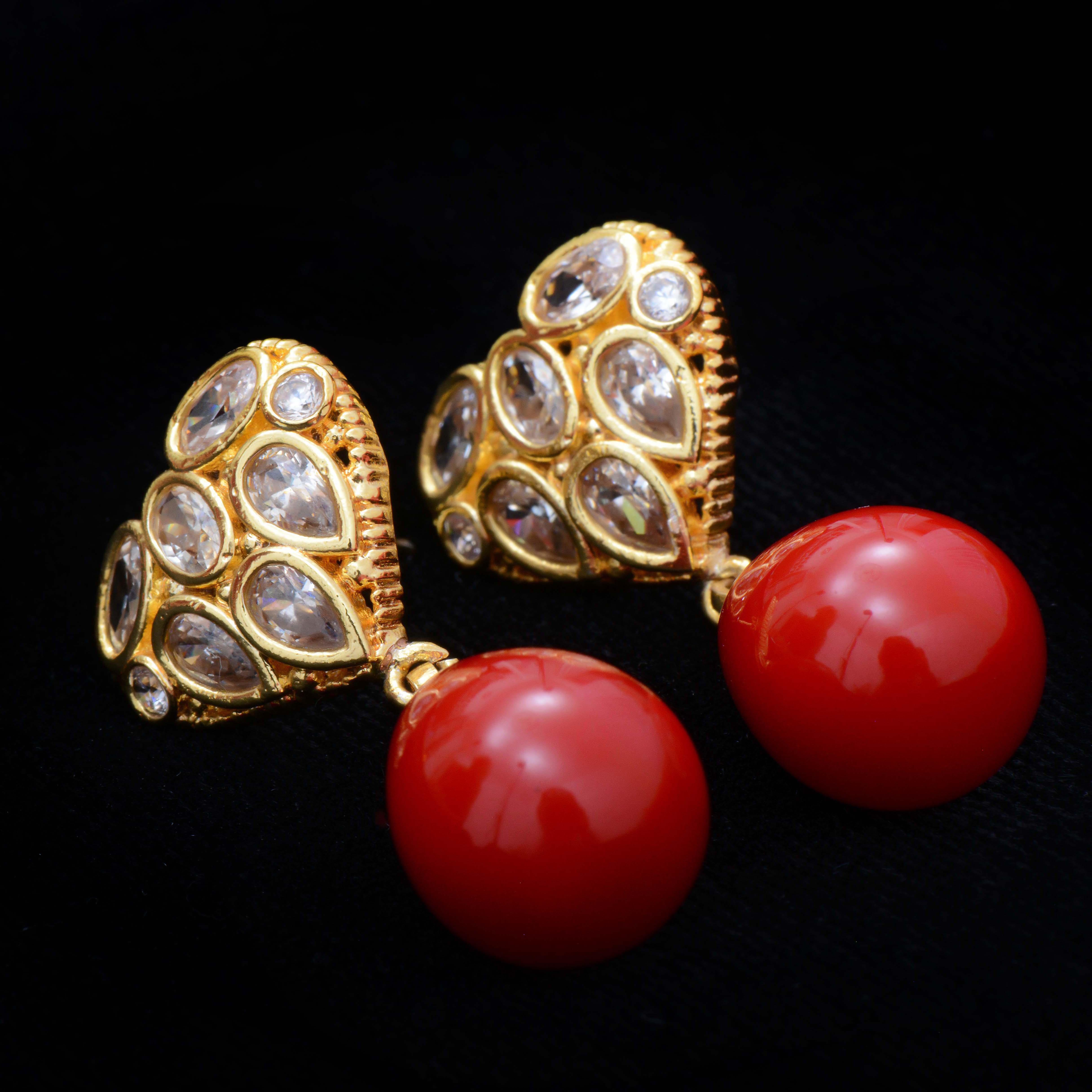 205.00 € inkl. Mwst.Dieses elegante handgefertigte Herz-Set für Damen besteht aus einer Halskette, passenden Ohrringen und einem Ring und vereint romantisches Design mit hochwertigen Materialien. Die vergoldeten Herz-Elemente aus Messing werden stilvoll mit roten Mallorca-Perlen und funkelnden Zirkonsteinen kombiniert und verleihen dem Set eine feminine, edle Ausstrahlung.