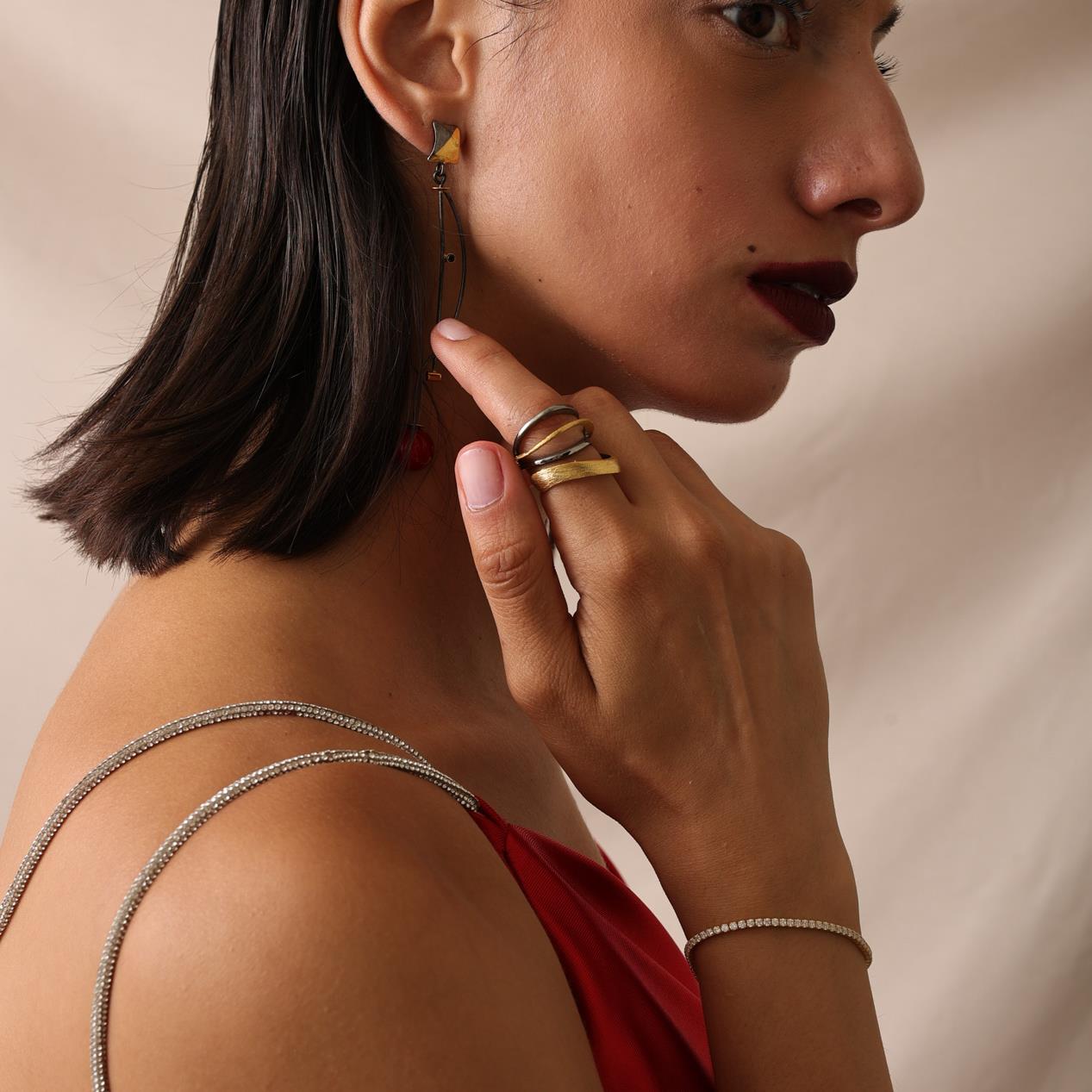 139.00 € inkl. Mwst.Dieser elegante handgefertigte Wickelring für Damen vereint schlichtes, zeitloses Design mit hochwertigen Materialien. Gefertigt aus 925er Sterling Silber, vergoldetem 14 Karat Messing und veredelt mit schwarzem Rhodium, setzt der Ring einen stilvollen und dezenten Akzent.